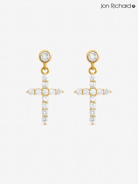 Jon Richard Gold Tone Cubic Zirconia Cross Earrings