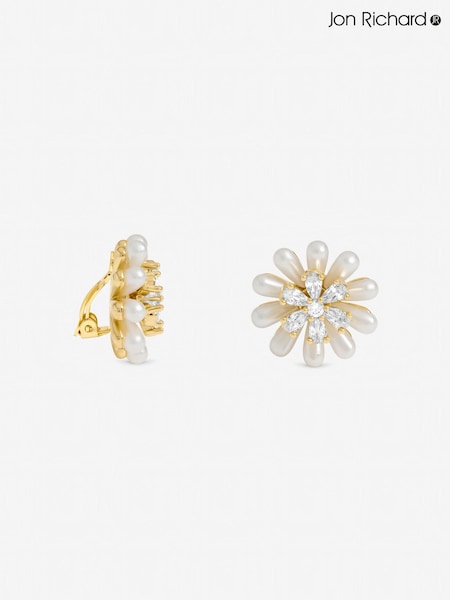 Jon Richard Gold Pearl Statement Flower Clip Earrings