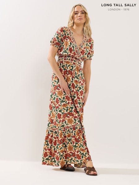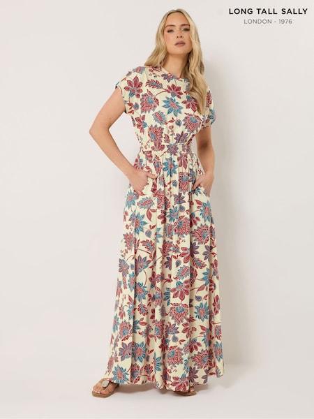 Long Tall Sally Cream Floral Satin Maxi Dress
