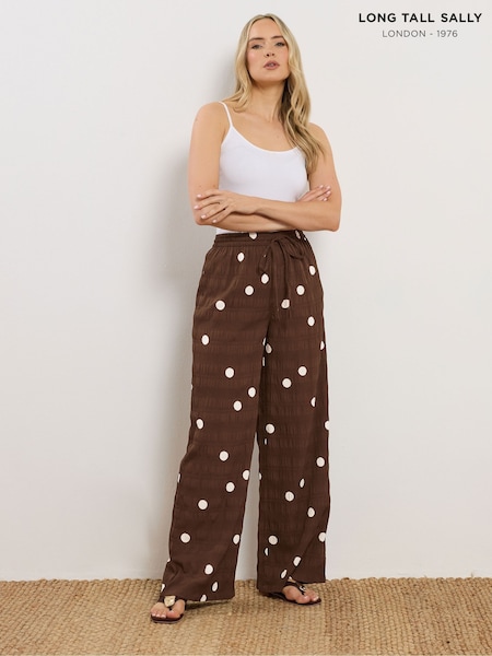 Long Tall Sally Brown Spot Print Wide Leg Trousers
