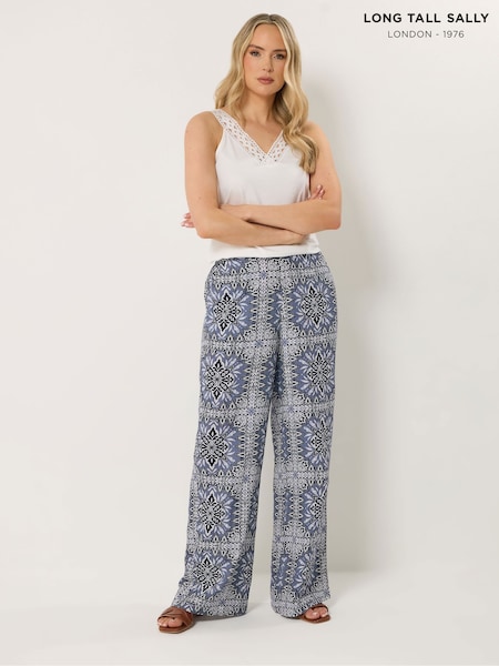 Long Tall Sally Blue Tile Print Wide Leg Trousers