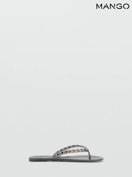 Mango Grey Studded Flip Flops