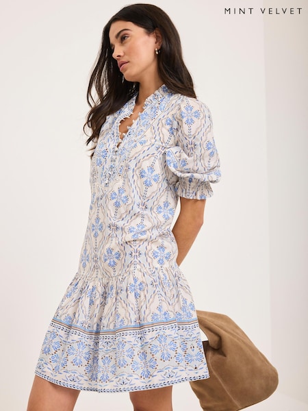 Mint Velvet Blue 100% Cotton Denim Puff Sleeve Shirt