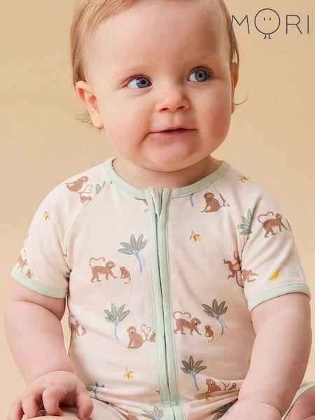 MORI Cream Monkeys Summer Supersoft Sleepsuit