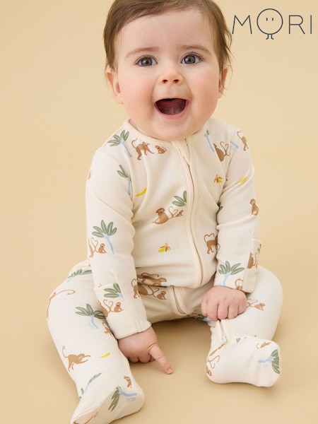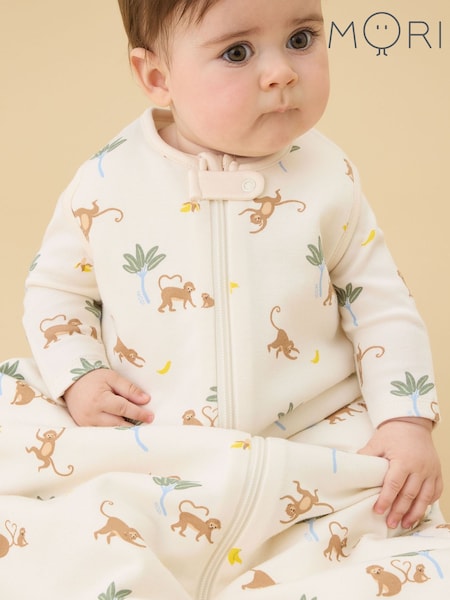 MORI Cream Monkeys Clever Zip Supersoft Sleepsuit