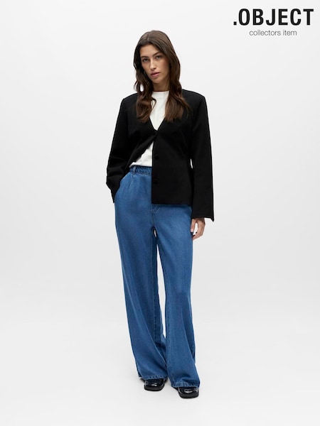 OBJECT Blue Lisa Wide Leg Mid Waist Trousers