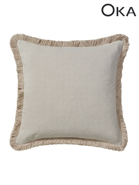 Oka Natural Stonewashed Linen Cushion Cover with Fringing