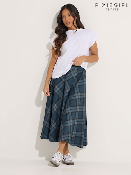 PixieGirl Petite Blue Checked A Line Midaxi Skirt