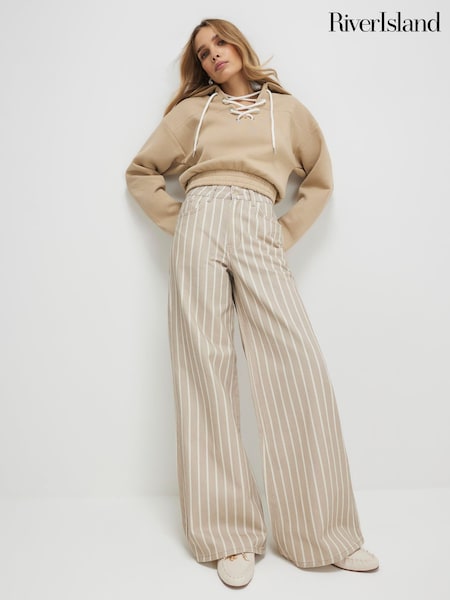 River Island Brown High Rise Stripe Super Wide Leg Jeans
