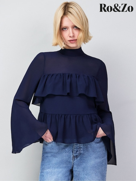 Ro&Zo Navy Blue Frill Detail Chiffon Blouse