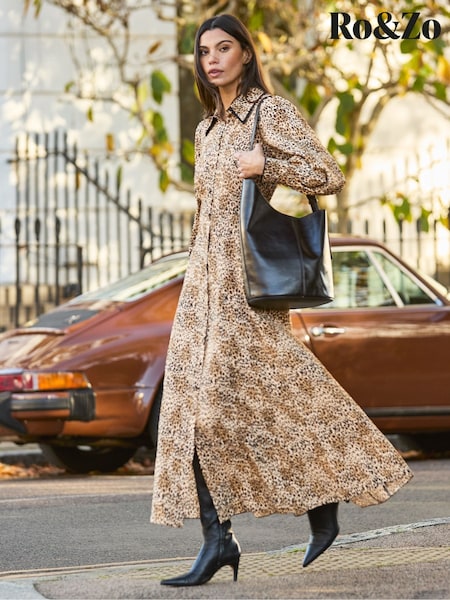 Ro&Zo Brown Petite Leopard Print Seam Detail Shirt Dress