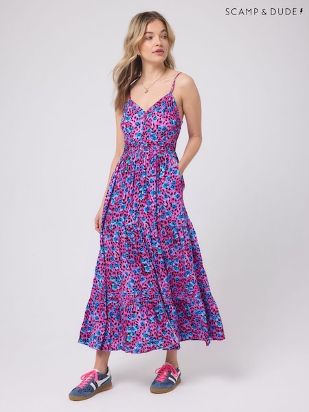 SCAMP & DUDE Pink Paradise Cheetah Pintuck Midi Sundress