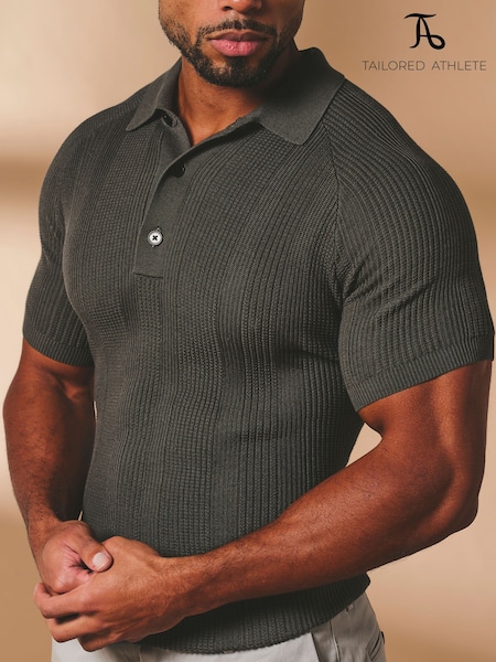Tailored Athlete Dark Green Muscle Fit Vertical Stripe Knitted Polo Shirt