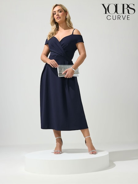 Yours Curve Blue London Pleated Cold Shoulder Skater Dress