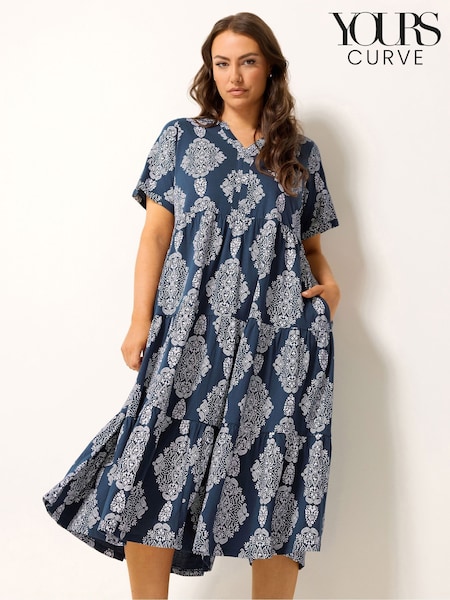 Yours Curve Blue Filled Sleeve Tunic Midi Dress