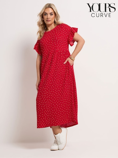Yours Curve Red Frilled Sleeve Midaxi Dress
