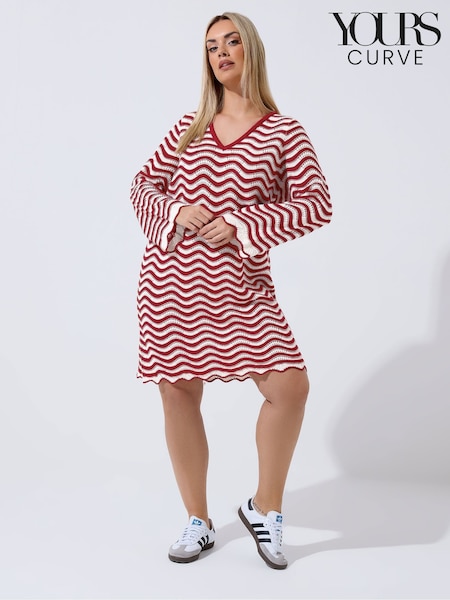 Yours Curve Red Limited Crochet Stripe Dress
