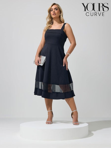 Yours Curve Blue London Mesh Insert Cold Shoulder Skater Dress