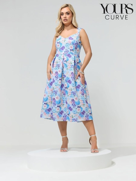 Yours Curve Blue London Floral Cold Shoulder Panel Skater Dress