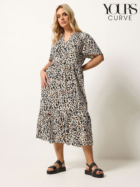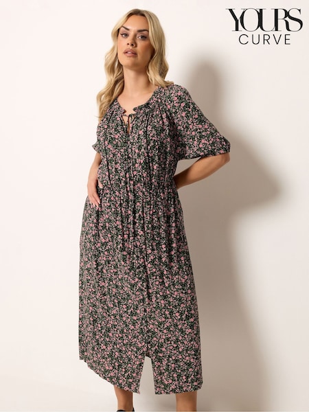Yours Curve Black Ditsy Floral Pintuck Maxi Dress
