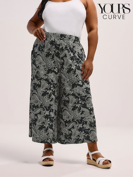 Yours Curve Black Short Floral Double Pleat Harem Trousers