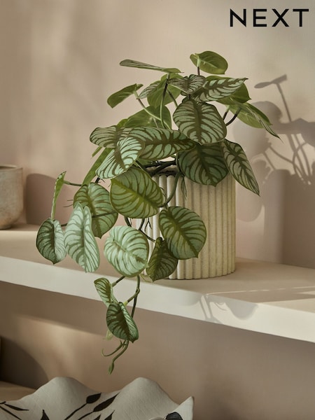 Green Artificial Trailing Plant in Ribbed Pot