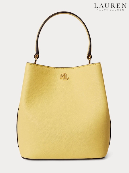 Lauren Ralph Lauren Yellow Crosshatch Small Reese Bucket Bag