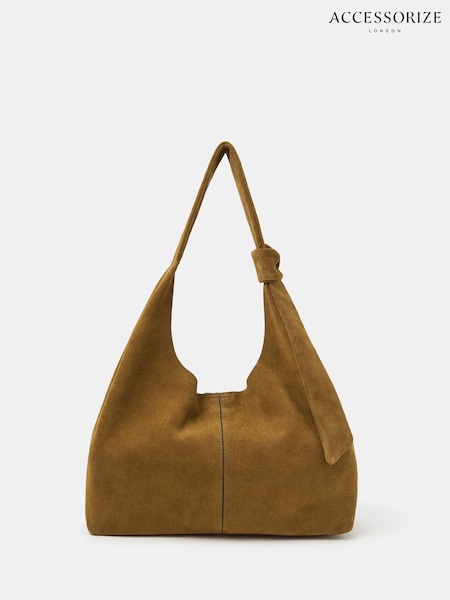 Accessorize Brown Slouchy Knot Suede Shoulder Bag