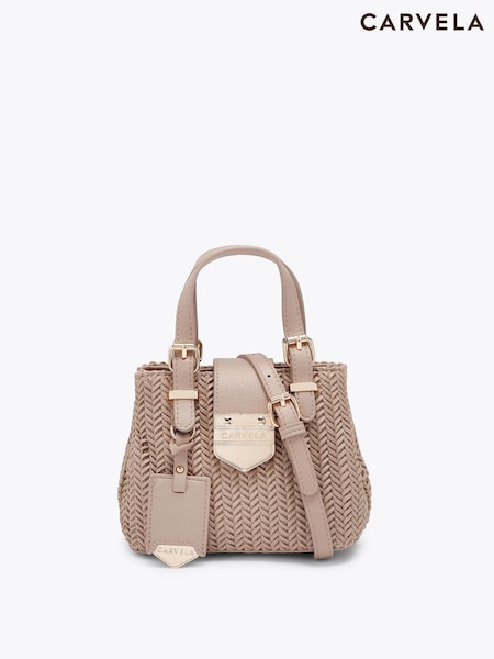 Tan Brown N. Premium Leather Weave Shoulder Bag