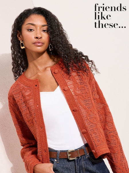 Friends Like These Orange Crochet Cardigan