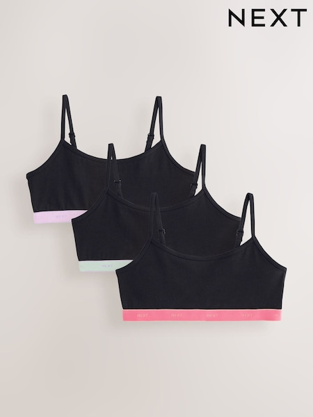 Black Bright Elastic Strappy Crop Tops 3 Pack (5-16yrs)