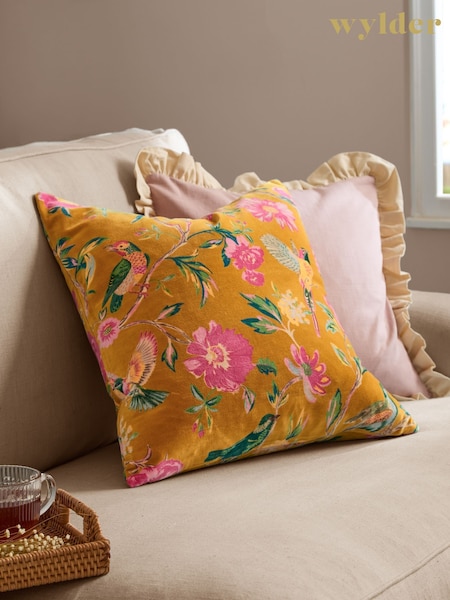 Wylder Gold Aviary Cotton Velvet Fibre Filled Cushion