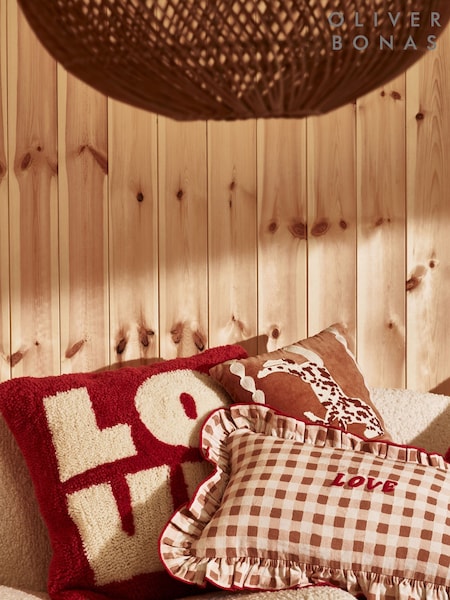 Oliver Bonas Red Love Tufted Cushion Cover 45x45cm