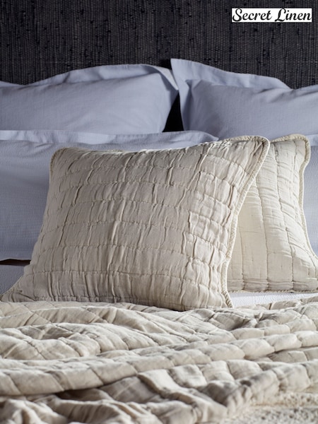 Secret Linen Store Natural Vivienne Quilted Cushion Cover