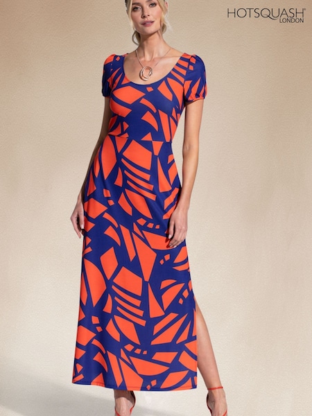 Hot Squash Blue Split Hem Scoop Neck Maxi Dress