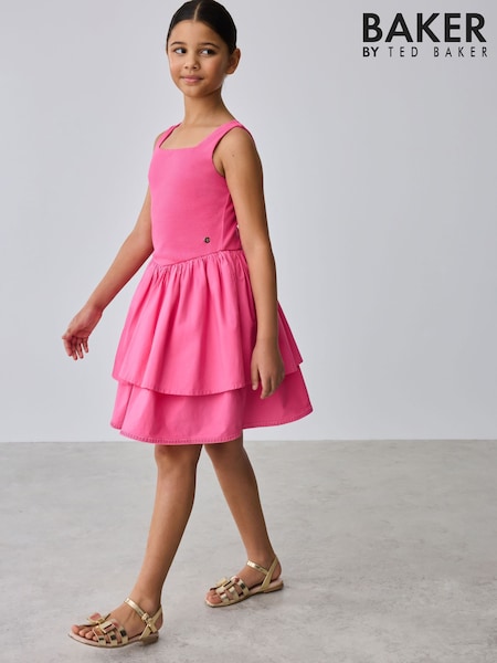 Baker by Ted Baker Pink Waisted Double Layer Skirted Dress