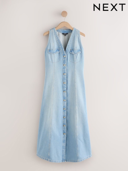 Bleach Denim Denim Sleeveless Button Through Midi Dress
