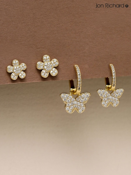 Jon Richard Gold Tone Butterfly Hoop Earrings Pack of 2