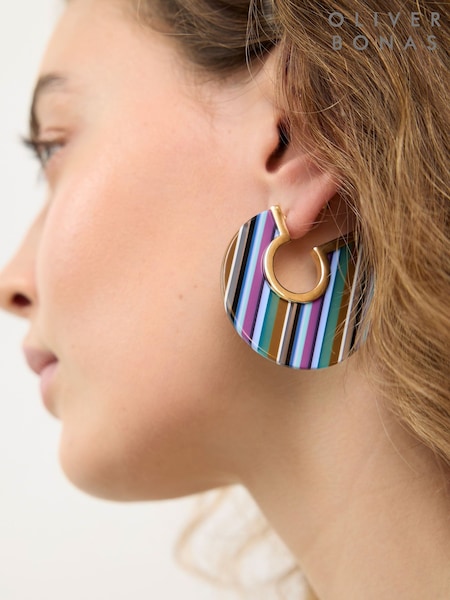 Oliver Bonas Blue Romy Stripe Resin Large Hoop Earrings