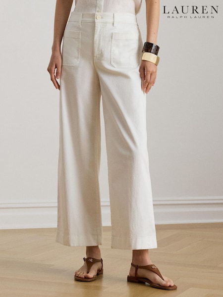 Lauren Ralph Lauren White Yurshane Cropped Flare Trousers