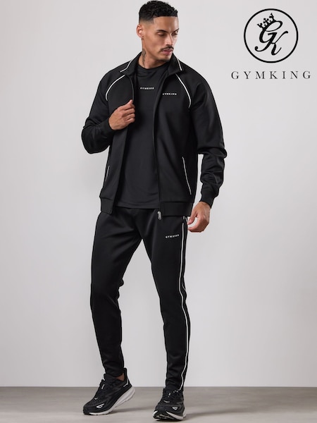 Gym King Black Core Piped Full Zip Funnel Jumper