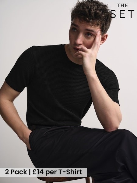 The Set 2 Pack Rib Knitted Short Sleeve Jumpers Black/Green