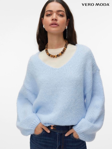 VERO MODA Blue Long Sleeve 2 Way V-Neck Jumper