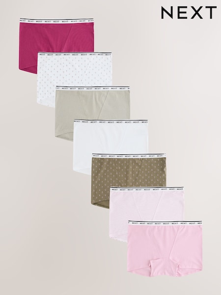 Pink/Green Ditsy Print Boyshort Cotton Logo Knickers 7 Pack