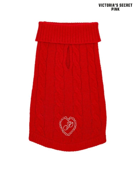 Victoria's Secret Pink Bright Vermillion Red Cable Knit Pet Jumper