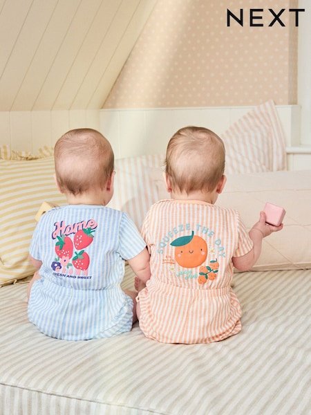 Blue and Orange Striped Jersey Sport Rompers 2 Pack