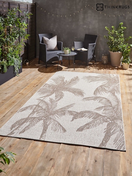 Think Rugs Beige Miami A444 Botanical Outdoor Rug