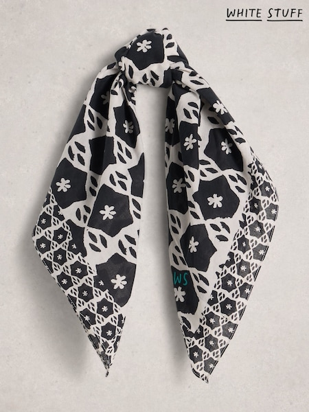 White Stuff Black Ellie Square Printed Scarf