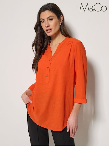 Yours Curve Orange Long Sleeve Linen Blend Shirt