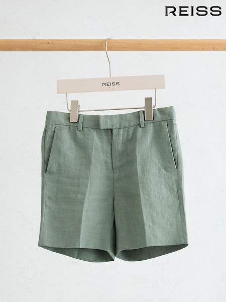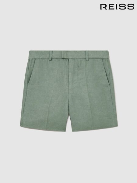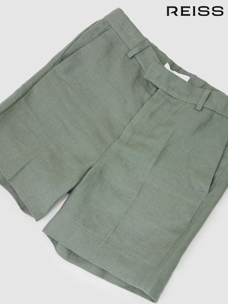 Reiss Sage Green Atlantic S Linen Tailored Shorts